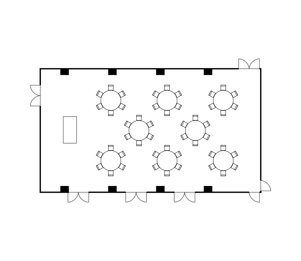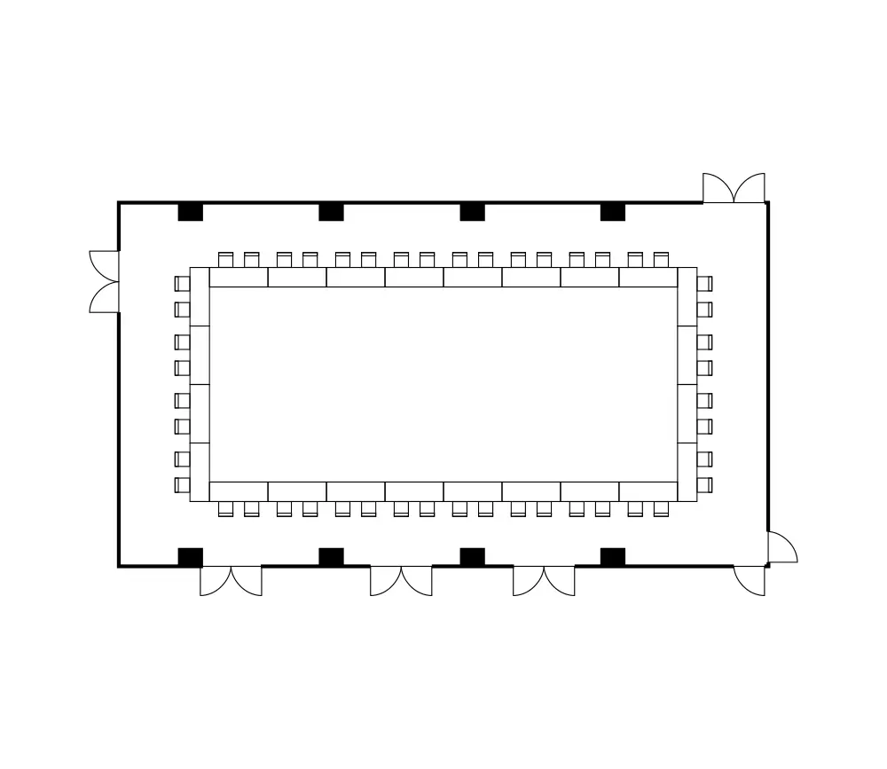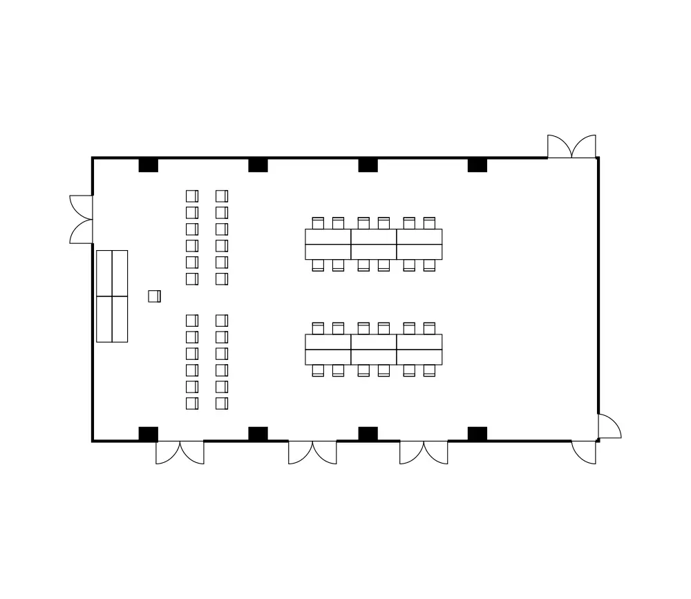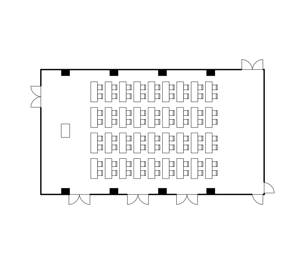 [黒岳]シアター 75席 / スクール 32席 / 会議(ロの字)24席 / 宴会(円卓)4卓