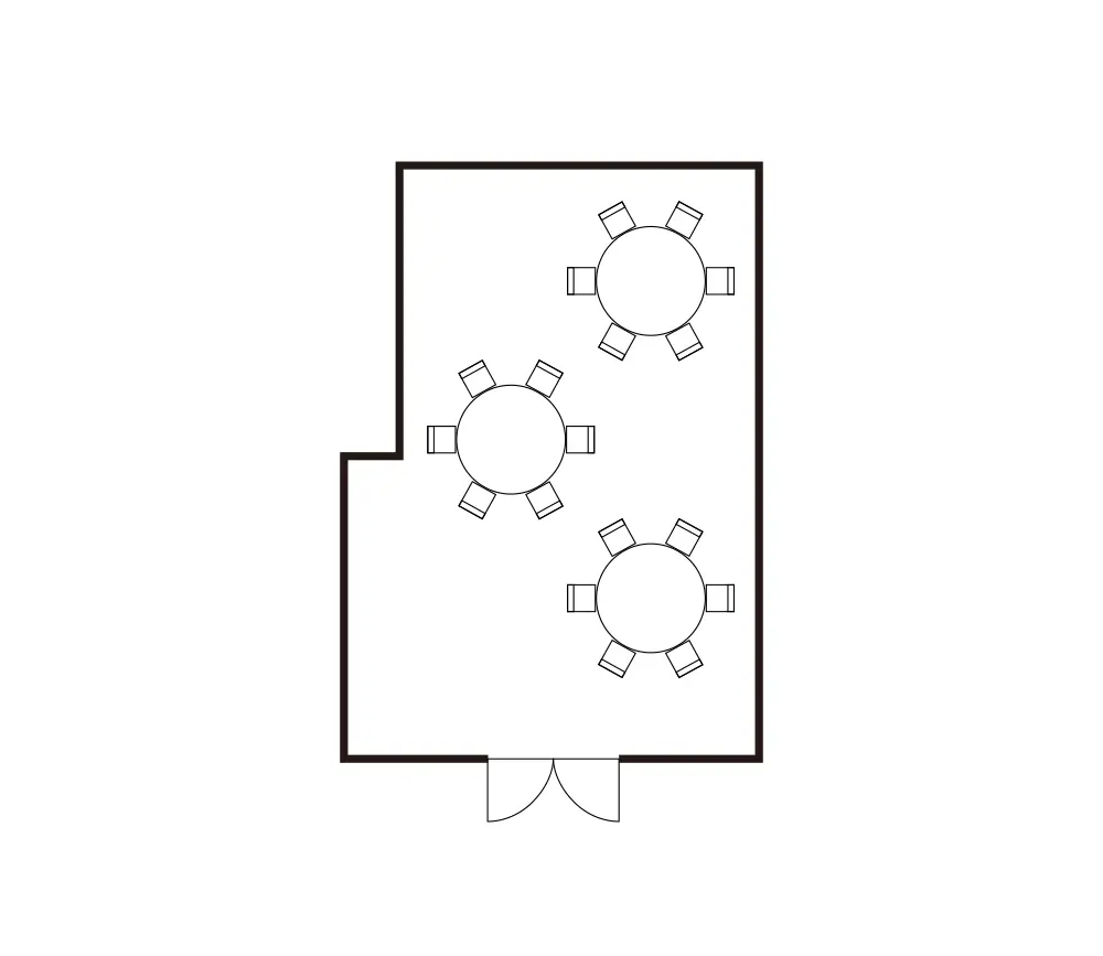 シアター 42席 / スクール 20席 / 会議(ロの字)16席 / 宴会(円卓)3卓